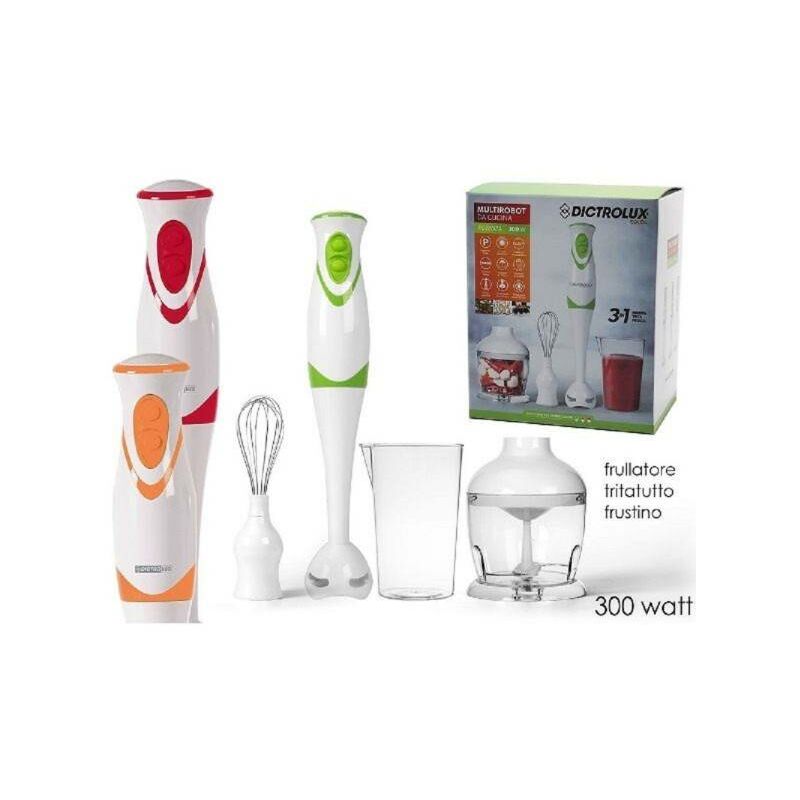Multirobot Mixer Mixplus 3in1 300w assortito Set multirobot elettrico 3in1 300 watt Monta - frulla - tritatutto Adatto per tritare le verdure, per i soffritti o ridurre in polvere frutta secca o cioccolato 2 velocità Impugnatura ergonomica Lama in acciaio inox Frusta in acciaio inox Capacità contenitore tritatutto 750 ml Capacità bicchiere 650 ml Lunghezza cavo 100 cm 220-240 v~ 50/60 hz - 300 w Dimensione box: h: 25cm l: 25.5cm w: 21cmn.b. il colore verrà inviato in base alla disponibilità in magazzino