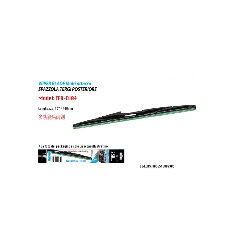 I tergicristalli MAXTECH hanno una maggiore durata, grazie al nuovo sistema Wiper Blade che garantisce una maggiore pulizia del parabrezza e resiste anche a temperature estreme. L'innovatissimo sistema spoiler garantisce una maggiore tenuta del tergicristallo sul vetro... La sua forma Wiper assicura uno stile completamente diverso rispetto ai classici tergicristalli d'acciaio. Inclusi 10 adattatori.Lunghezza 16 / 400mm.Multi attacco.Flessibile e ad alta qualità.Non indurisce con il freddo e il gelo.Gomma naturale di alta qualità, resistente al sole.Migliora la visibilità con perfetta silenziosità.