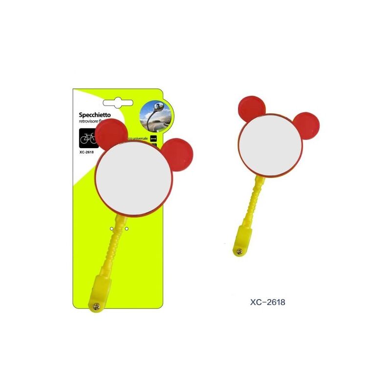 SPECCHIETTO RETROVISORE FLESSIBILE CON ORECCHIE UNIVERSALE PER BICICLETTA XC2618Il Specchietto Retrovisore Flessibile Con Orechie Per Bici Bicicletta XC2618 è un accessorio essenziale per i ciclisti che desiderano una maggiore consapevolezza della propria circolazione stradale. Con un design intelligente e funzionale, questo specchietto retrovisore offre una visione chiara e ampia del traffico che si avvicina da dietro, migliorando la sicurezza durante la guida in bicicletta.Caratterizzato da un Attacco Universale, questo specchietto si adatta facilmente alla maggior parte dei tipi di biciclette, garantendo una installazione senza complicazioni. Che tu abbia una mountain bike, una bici da corsa o una bicicletta da città, questo specchietto sarà compatibile e pronto all'uso.Il Corpo Flessibile dell'XC2618 consente un'ampia gamma di regolazioni, permettendo al ciclista di posizionare l'angolo dello specchio in modo ottimale per la propria visibilità. Questa flessibilità è essenziale per