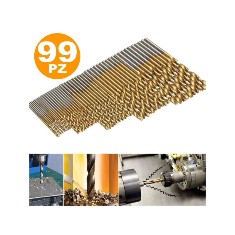 Pratico e comodo set per professionisti e amanti del fai da te composto da ben 99 punte professionali HSS per trapano per fori su alluminio, legno, ferro.Ideale per chi è nel settore edile ma anche per piccole riparazioni in casa. Nella valigetta in ferro che riceverete troverete ben 99 punte dale misure più comuni e richieste a partire da 1.5 mm fino a 10mm per fori su svariati oggetti, siano essi infissi in alluminio, legno, ferro.Misure e quantità delle punte nella confezione.16 x 1.5mm HSS Drills16 x 2mm HSS Drills15 x 2.5mm HSS Drills10 x 3mm HSS Drills10 x 3.2mm HSS Drills8 x 3.5mm HSS Drills8 x 4mm HSS Drills3 x 4.5mm HSS Drills3 x 5mm HSS Drills2 x 5.5mm HSS Drills2 x 6mm HSS Drills2 x 6.5mm HSS Drills2 x 8mm HSS Drills2 x 10mm HSS Drills