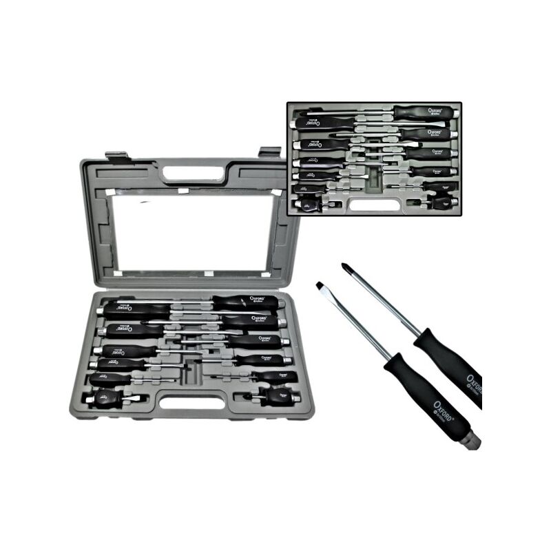 Set di cacciaviti composto da 12 pezzi, altra chicca della OXFORD che è sinonimo di qualità in ambito di accessori come cacciaviti etc.Set composto da 6 cacciaviti a taglio e 6 a croce con testa esagonale. Questo prodotto è perfetto per tutti gli amanti del bricolage e del fai da te. Utile anche per i professionisti che necessitano di affidabilità e precisione. Facilmente trasportabile grazie alla valigetta dove sono riposti e ottima per tenere sempre in ordine tutti gli attrezzi.Caratteristiche tecniche: Misure: 6x38mm 3x75mm 5x75mm 6x100mm 8x150mm 9x200mm PH2x38mmPH0x75mmPH1x75mmPH2x100mmPH3x150mmPH4x200mm Testa esagonale con aggancio per chiave Impugnatura ergonomicaLa confezione contiene: Nr. 6 Cacciaviti tagio Nr. 6 Cacciaviti croce