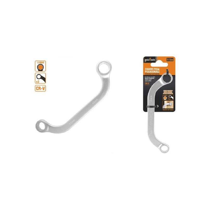 Set Chiave Fissa Poligonale Doppia a U da 11-13mm Cromata Chrome Vanadium 97692Il nostro set di chiavi fisse poligonali doppie a U rappresenta la soluzione ideale per affrontare una vasta gamma di lavori, garantendo prestazioni affidabili grazie ai materiali di alta qualità utilizzati nella sua costruzione.Caratteristiche Principali:Materiale di Alta Qualità: Le chiavi sono realizzate in chrome vanadium, garantendo durata e resistenza nel tempo.Design Poligonale Doppio a U: La forma poligonale doppia a U offre una presa salda e sicura, consentendo un controllo ottimale durante l'uso.Misura Versatile: Questo set è progettato per coprire una vasta gamma di dimensioni con misure comprese tra 11mm e 13mm.Ogni chiave è cromata per resistere alla corrosione e all'usura, garantendo una lunga durata e prestazioni costanti. La cromatura non solo contribuisce alla resistenza agli agenti atmosferici, ma conferisce anche un aspetto elegante e professionale alle chiavi.Contenuto della Confezione