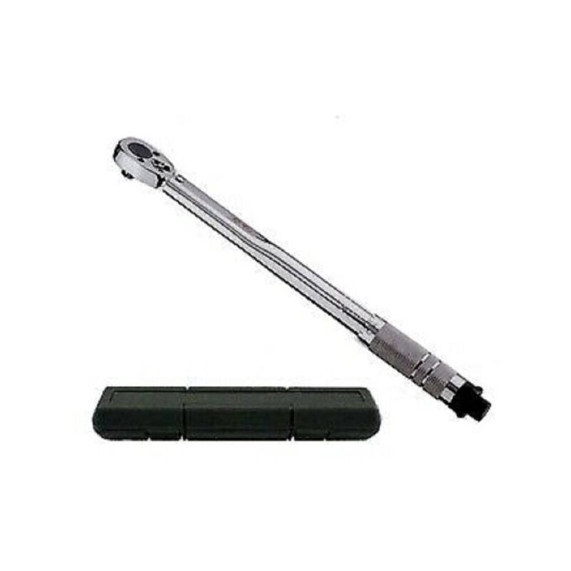 Chiave dinamometrica/Cricchetto reversibile 3/8 (19-110 Nm) in custodiaChiave dinamometrica in cromo vanadio. Ottimo strumento per il fissaggio di dadi e bulloni con la giusta coppia di serraggio senza rischiare allentamenti o sfilettature. Dotata di astuccio in plastica. Tabella di conversione impressa sulla custodia.Lunghezza (mm): 300Attacco (in): 3/8Nm: 19-110