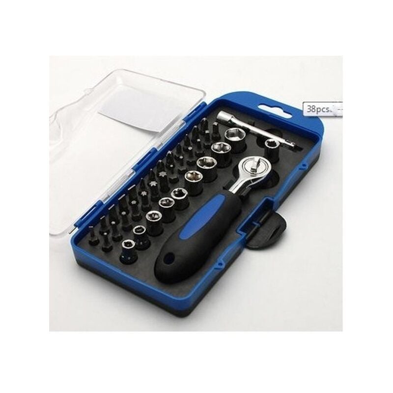 SET 38 CHIAVI A BUSSOLA CON CRICCHETTO INSERTI ASSORTITIDescrizione: Il SET 38 CHIAVI A BUSSOLA CON CRICCHETTO INSERTI ASSORTITI è l'ideale per professionisti e appassionati del fai-da-te. Questo set completo include una varietà di chiavi a bussola e cricchetti, progettati per soddisfare tutte le tue esigenze di manutenzione e riparazione.Caratteristiche Principali:Durevolezza: Materiali di alta qualità per una lunga durata.Versatilità: Adatto per una vasta gamma di applicazioni.Ergonomia: Design confortevole e facile da maneggiare.Incluso nella confezione:Teste a bussola: PH0, PH1, PH2, PH3;