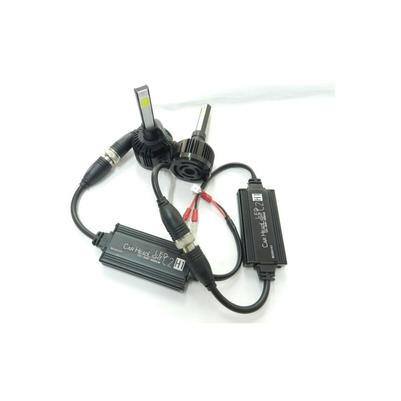 Coppia di lampade a led ad alta luminosità per auto, sono un ottimo ricambio per le lampadine di serie. Sviluppano una potenza luminosa di 3000 Lumen con 2 LED per ogni faro bianco freddo a bulbo e sono facili da montare. Vanno montate come riportato nel foglio illustrativo presente all'interno della confezione. Sono universali e si adattano alla maggior parte delle auto con centraline che supportano le caratteristiche descritte. Sul fondo ha una ventola per il raffreddamento del faro. Incluso nella confezione anche 2 tappi in gomma per il faro.Se i fari presentano una bassa luminosità controllate la potenza erogata dalla centralina e il grado di trasparenza della calotta del faro.Specifiche tecniche:Attacco H1Intensità Luminosa: 2600 Lumen a bulboLuce Bianca 6000KVoltaggio: 12-24 VoltIntensità di corrente per il funzionamento: 2.2A (DC12V)Potenza: 66W / SET (33W a Bulbo)Grado di Protezione: IP68La confezione contiene:Nr. 2 Lampade 2 LED con CablaggioNr. 2 Tappi in plastica per