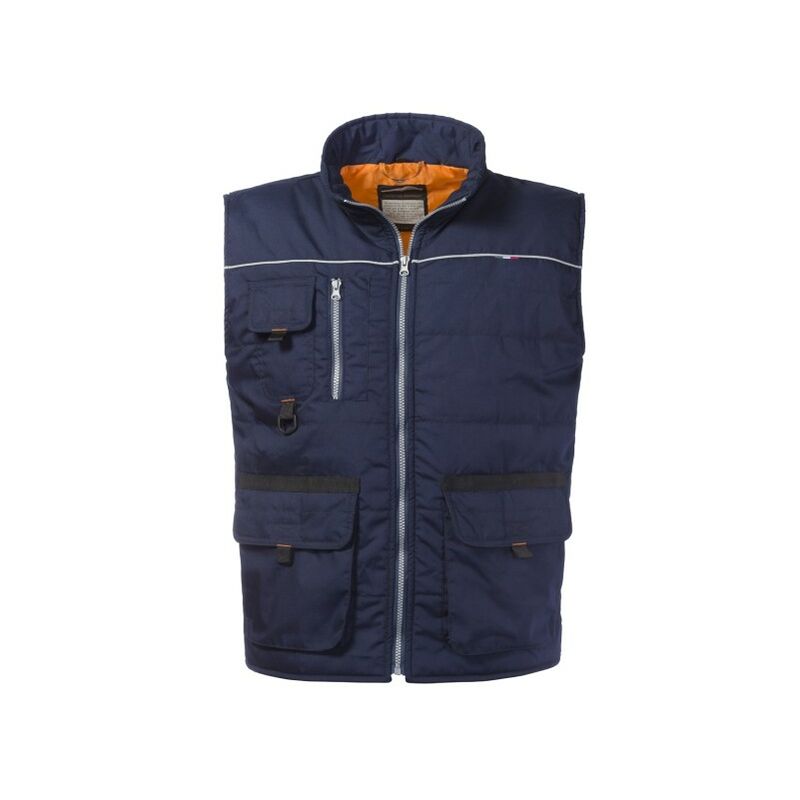 Gilet Morganchiusura Anteriore Con Cerniera, Portacellulare Chiuso Con Aletta E Velcro Applicato Al Petto Destro, 1 Tasca A Filetto Accanto Al Portacellulare Chiusa Con Cerniera Verticale, 2 Tasche Inferiori Con Soffietti Applicate Chiuse Con Aletta E Velcro Con Tasche Scaldamani Laterali, 1 Tasca Interna A Sinistra Chiusa Con Velcro, Elastico Interno Al Giromanica Antifreddo E Antivento, Coda Di Topo Rifrangente Al Carrè Anteriore E Posteriore, Fondo Posteriore Arrotondato.