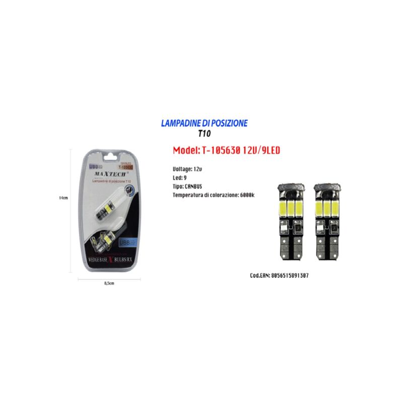 Lampadine di posizione T10 MAXTECH T-105630 12V 9LED CANBUS ULTRA LUMINOSE 6000KBenvenuti nel mondo dell'illuminazione automobilistica avanzata! Se siete alla ricerca di lampadine di posizione che uniscano prestazioni di alto livello, design innovativo e affidabilità senza compromessi, allora siete nel posto giusto. Le Lampadine di posizione T10 MAXTECH T-105630 12V 9LED CANBUS sono la scelta ideale per coloro che desiderano aggiornare e migliorare l'illuminazione dei propri veicoli. Con il loro design all'avanguardia e la tecnologia all'ultimo grido, queste lampadine trasformano l'esperienza di guida, garantendo una visibilità superiore e una presenza straordinaria sulla strada.Le lampadine di posizione T10 MAXTECH T-105630 12V 9LED CANBUS sono progettate per offrire un'illuminazione potente e uniforme, con un colore ultra luminoso di 6000K che dona al vostro veicolo un aspetto moderno ed elegante. Grazie alla loro compatibilità con il sistema CANBUS, queste lampadine assicurano una