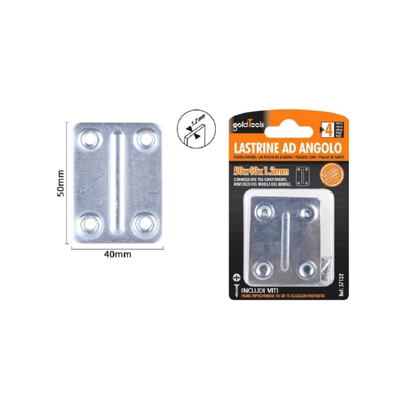 SET 4PZ LASTRINE LASTRINA PIASTRA DI GIUNZIONE 50X40X1.2MM CON VITI MOBILI 57132La lastrina staffa piastra 50x40x1.2mm è un componente essenziale per il fissaggio di mensole, ripiani o mobili. Dotata di 4 fori per il fissaggio tramite viti, queste lastrine sono ideali per rinforzare sedie, mobili e sono utilizzate anche in vari progetti hobbistici.Caratteristiche principali:Confezione: Set da 4 pezzi.Dimensioni: 50x40x1.2 mm.La confezione include quattro lastrine, ognuna delle quali misura 50x40x1.2mm. Queste lastrine sono realizzate con materiali di alta qualità, garantendo una durata e una resistenza ottimali. Grazie ai fori presenti, l'installazione è semplice e veloce, richiedendo solo l'uso delle viti incluse nella confezione.Le lastrine sono progettate per offrire una solida base di supporto, assicurando una stabilità affidabile per mensole, ripiani o mobili. Che tu sia un falegname professionista o un appassionato di fai-da-te, queste lastrine sono un'aggiunta versatile al tuo