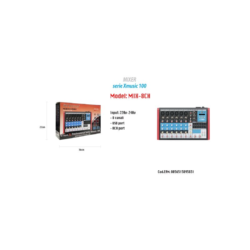 Mixer audioMixer professionale con ben 8 canali per poter mixare 8 fonti audio differenti in un unico suono e con un unico mixer! Divertitevi a creare basi musicali miscelando canzoni, suoni e molto altro, fate pratica per diventare i migliori dj della zona. Dotato di ben 6 ingressi per microfoni a condensatore XLR a bassa impedenza con funzione phantom +48V, ingresso USB per riprodurre brani direttamente dall'ingresso usb e grazie al suo display sarà più facile gestire i file, 6 ingressi HI-LINE per collegare tastiere o giradischi, Ingressi TAPE rca. Dispone di due manopole GAIN per regolare il volume del brano e di un' equalizzatore stereo per bilanciare l'audio, inoltre potrete creare giochi di suono con l'effetto ECO.SPECIFICHE TECNICHE:Mixer a 8 chIngresso usbFunzione phantom 48vEqualizzatoreDisplay ledIngressi Tape RCA6 ingressi per microfono XLRAlimentazione: AC 110-240V 50-60Hz
