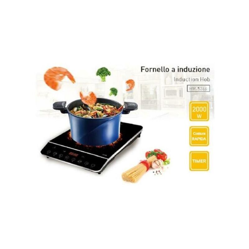 FORNELLO A INDUZIONE 2000W HOOMEI ELETTRODOMESTICI PIASTRA AD INDUZIONE ELETTRICA 2000W DA 60 A 240 C° PIANO COTTURA ELETTRICOQuesta piastra ad induzione dal design trendy ha una potenza di 2.000 W e vi consente di preparare facilmente il pranzo o la cena grazie alla sua grande utilità ed ai semplici tasti di controllo. La piastra ad induzione ha diversi livelli di temperatura, da 60° a 240°C. Ideale per riscaldare, friggere e cuocere. La piastra non funziona a vuoto, se si attiva senza un recipiente e senza una pietanza, interviene una protezione e la spegne! Le cucine a induzione consentono di cucinare rapidamente, risparmiando energia. Per questi i loro vantaggi sono impiegate da tempo nelle grandi aziende e sempre di più anche nelle economie domestiche private. In questo tipo di cucine l'energia calorica è generata da campi magnetici a media frequenza. Essi attraversano il fondo delle pentole producendo energia elettrica che scalda il contenitore e il suo contenuto.Caratteristiche