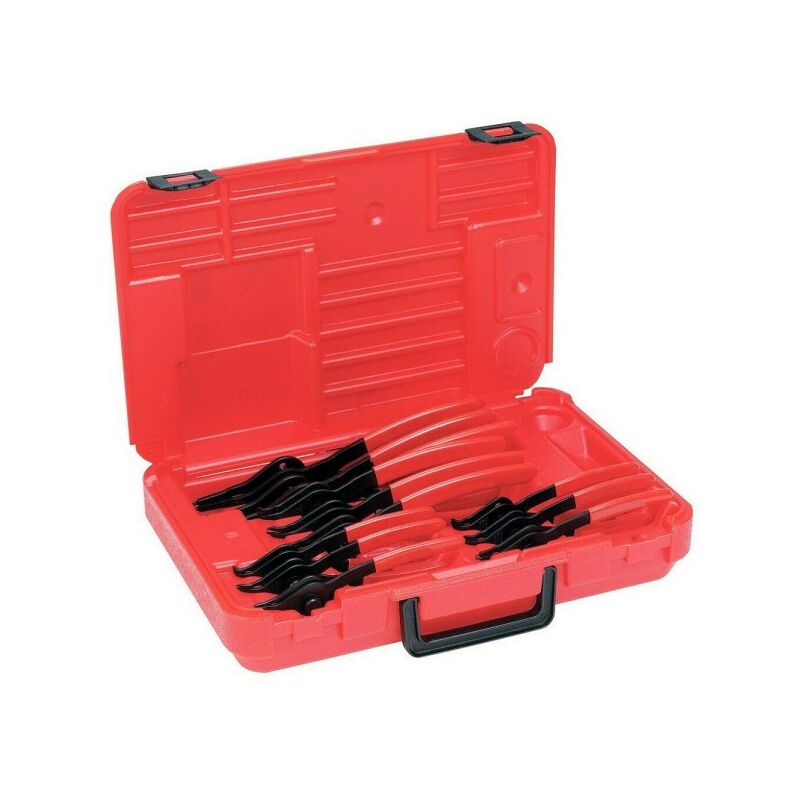 Set 12 pinze pinza reversibile per anelli elastici seeger interni esterni 07209Set composto da 12 pinze reversibili per anelli elastici seeger.Specifiche Punte piatte, angolo 45° e angolo 90° Reversibili (per anelli interni ed esterni) Adatte per rimozione, installazione anelli elastici Vite centrale zigrinata per un facile cambio, presa sicuraContenuto della confezione 12 Pinze Valigetta