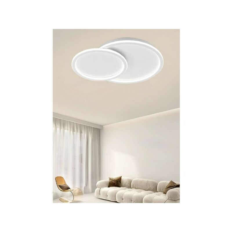 Plafoniera A Led Dal Design Moderno E Innovativo Composto Da 2 Cerchi Che Si Sovrappongono.specifichepotenza 45 Wattflusso Luminoso: 3600 Lmcri: Ra>80 Angolo Del Fascio Luminoso: 240°alimentazione: Ac 220v-240v/50-60hzdimmerabile: Nomateriale: Alluminio + Pvc + Ferro Verniciatocolore Struttura: Biancodimensioni: 500x50x400 Mmcaratteristiche: Cerchio / Design Rotondoambiente Ideale: Camera Dei Bambini, Sala Da Pranzo, Camera Da Lettodotata Di Tripla Accensione A Luce Calda - Fredda - Naturale Selezionabili Tramite Interruttorecertificazione: Ip20