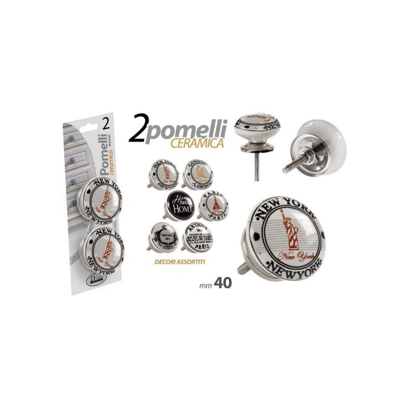 KIT 2PZ POMELLI MOBILI MULTIUSO POMELLO IN CERAMICA 40MM DECORI ASSORTITI 843037Aggiungi un tocco di stile e funzionalità ai tuoi mobili con il Kit 2PZ Pomelli Mobili Multiuso. Realizzati in ceramica di alta qualità, questi pomelli non solo aggiungono un elemento decorativo alla tua casa, ma offrono anche una presa comoda e sicura per aprire cassetti, armadi e altro.Caratteristiche principali:Multiuso: Ideali per una vasta gamma di mobili, inclusi cassetti, armadi, comodini e altro ancora, questi pomelli sono versatili e si adattano a diversi stili di arredamento.Dimensioni: Con un diametro di 40mm, questi pomelli offrono una dimensione ideale per essere impiegati su una varietà di superfici senza risultare né troppo grandi né troppo piccoli.Decori assortiti: Ogni kit include una selezione di decori assortiti, aggiungendo un tocco di varietà e personalità alla tua casa.Contenuto della confezione:2 Pomelli in ceramica con decori assortiti.N.B. Il decoro verrà inviato a seconda della