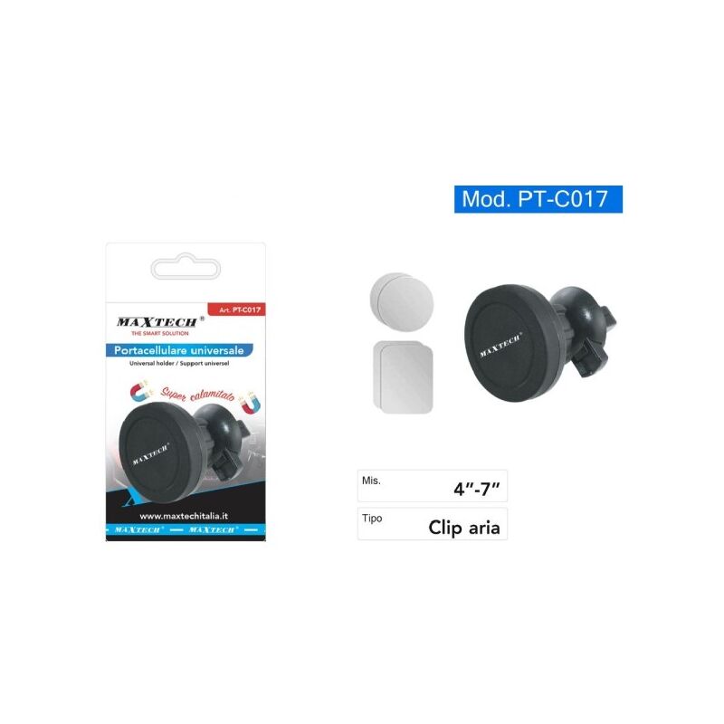 PORTA CELLULAREDescrizione:Marca: MAXTECHGarantisce una presa sicura sia sul parabrezza che direttamente sul cruscotto.Semplice da posizionare, utilizzabile anche custodia.Caratteristiche: Brevettata per fissaggio su cruscotto Resistente a vibrazioni, trazione e a torsione senza l'utilizzo di adesivi permanenti. Aggancio universale con supporto calamitato Per Smartphone con e senza con custodia Rotabile 360° Compatibilità: Universale Misura 4-7Tipo clip aria