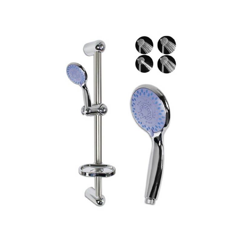 Saliscendi cromato con soffione dotato di ghiera girevole da cui potrete scegliere di volta in volta che tipo di gettata desiderate. Semplice da montare e da pulire, la linea moderna ed essenziale lo rende adatto a qualsiasi stile di bagno. Fornito con tubo flessibile per il soffione, un comodo portasapone scorrevole e viti per il fissaggio.Altezza totale asta 60 cmRaccordo standard del flessibile ½Lunghezza tubo flessibile 180 cmSoffione multi gettoDimensioni portasapone 12x7,5x1,5 cmDiametro soffione 8 cmDiametro attacchi asta 4 cm