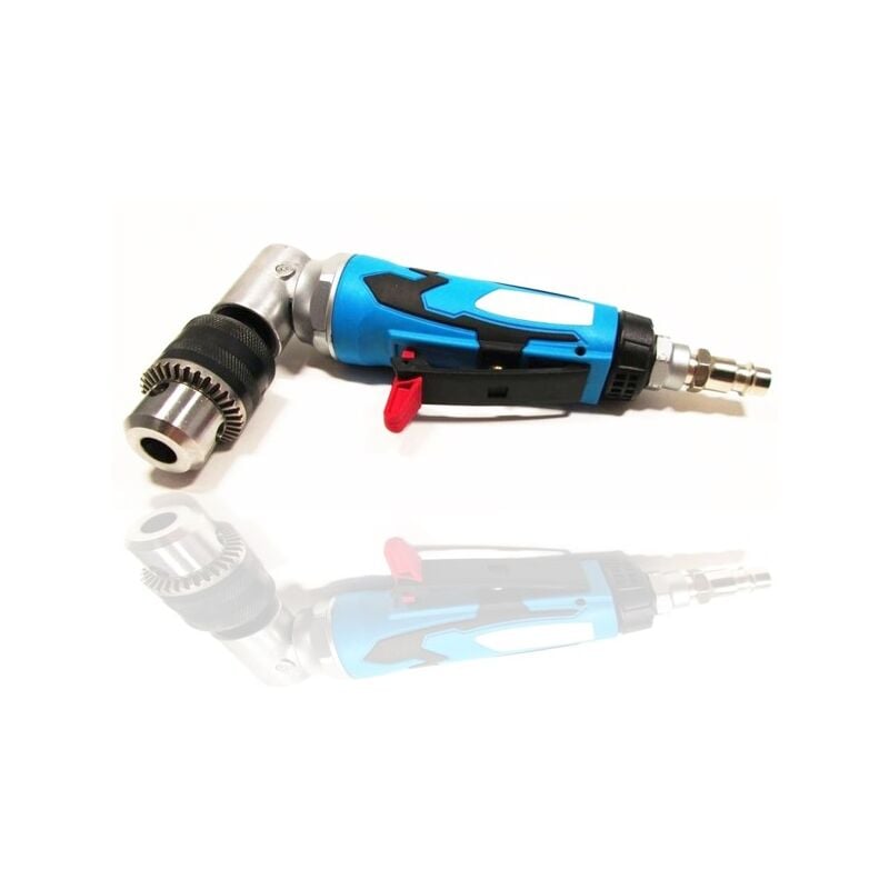 Trapano con angolo di 90° mandrino a cremagliera da 3/8 per punte da 1 a 10mm. Dotato di regolazione della velocità e pratica leva di azionamento con fermo di sicurezza. Impugnatura con rivestimento soft/grip per la presa antiscivoloCaratteristicheVelocità: 15000rpm Consumo d'aria: 4cfm (113 L/min)Attacco aria ad innesto rapido con filettatura da: 1/4Pressione: 90PSI, 6.3barMandrino: 3/8Dimensioni: 165 X 95mm
