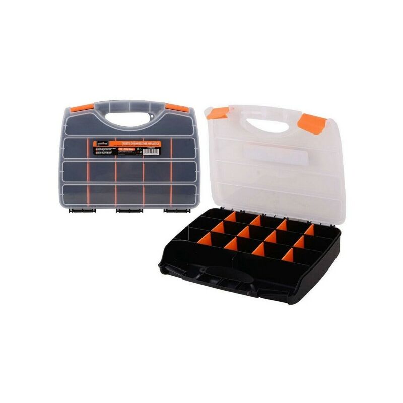 Cassetta Attrezzi Minuteria Organizzatore Organizer 320x255x60mm 17 Scomparticassettina Porta Attrezzi In Plastica Con 17 Scomparti Dove Riporre Tutte Le Minuterie Come Viti, Tasselli E Bulloni, E Alcuni Scomparti Più Grandi Per Attrezzi Vari. Ideale Per Uso Professionale E Per Tutti Gli Amanti Del Fai Da Te Affinché Tutti I Vostri Utensili Siano Sempre A Portata Di Mano E Al Contempo Riposti Ordinatamente. Realizzata Interamente In Plastica Resistente è Dotata Di Maniglia E Chiusure Rapide Ben Salde. Dimensione: 320x255x60mm.
