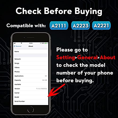 [Modello compatibile] - Questa batteria è compatibile solo con iPhone 11, A2111, A2223, A2221. Si prega di confermare il modello di iPhone prima dell'acquisto. (Controlla il tuo modello di iPhone nei seguenti passaggi: Impostazioni - Generale - Informazioni - Nome modello)