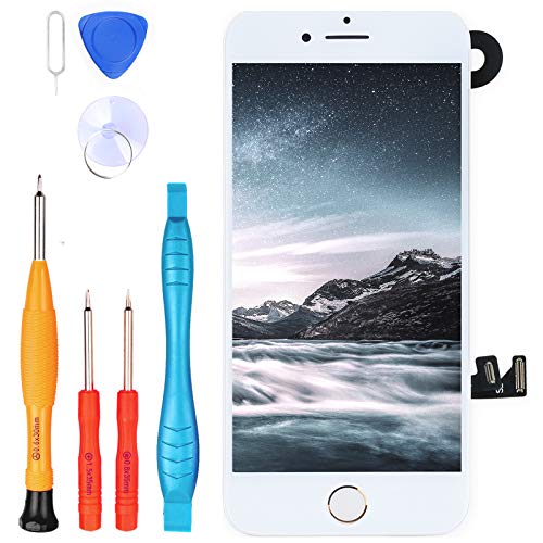 LL TRADER Schermo per iPhone 8 con Pulsante Home Oro, Fotocamera Frontale, Altoparlante per Le Orecchie, iPhone 8 Display Screen Vetro Ricambio Retina LCD Digitizer con Strumenti Bianco