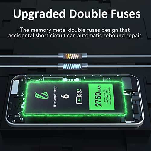 Alta capacità: 2750 mAh ad alta capacità, 51% superiore a quella della batteria originale dell'iPhone 6, la dimensione è simile alla batteria originale, il che significa che non devi caricare il tuo iPhone con la frequenza di una volta.