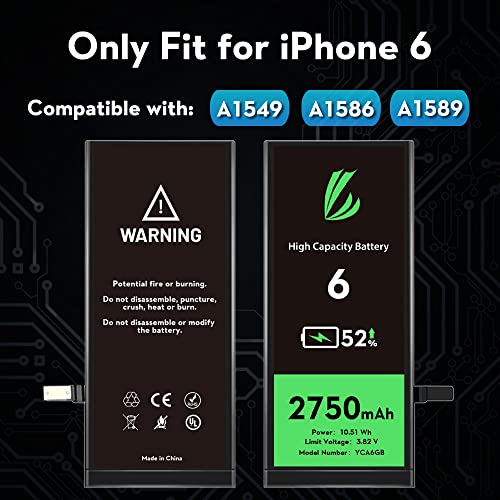 LL TRADER Sostituzione Della Batteria per iPhone 6, 2750 mAh ad Alta Capacità per iPhone 6 Modello A1549, A1586, A1589 0 Ciclo 2022 Nuova Versione con Kit di Strumentii