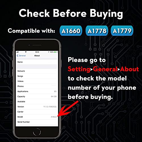 Modello compatibile: questa batteria è compatibile solo con iPhone 7, A1660, A1778, A1779 (non per iPhone 7 Plus). Si prega di confermare il modello del vostro iPhone prima dell'acquisto. (Controlla il modello del tuo iPhone nei seguenti passaggi: Impostazioni--Generale--Informazioni - Nome del modello)