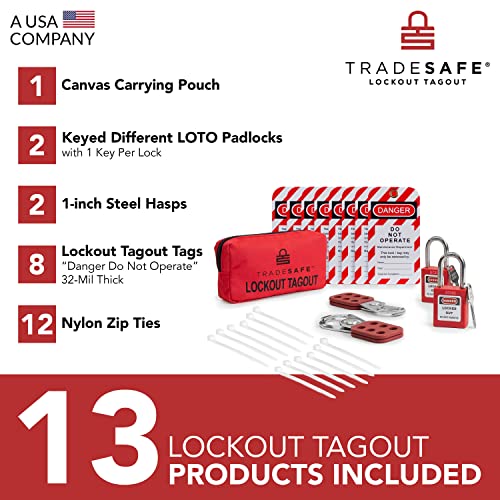 TRADESAFE Kit di bloccaggio Tagout con Hasps, etichette di blocco, serrature Loto rosse, kit di bloccaggio elettrico per la conformità OSHA, kit Loto personale (1 chiave per blocco)
