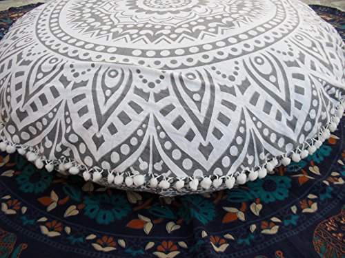 Tradizionale Jaipur argento ombre mandala cuscino da pavimento, grande, decorativo federe 81,3 cm rotondo pouf ottomano, boho copricuscini, cuscino indiana Silver