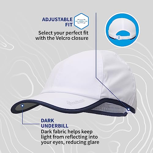 TrailHeads Cappello da corsa da uomo con protezione UV | Cappelli sportivi ad asciugatura rapida per uomo | Cappelli UPF 50 | Cappelli estivi da uomo, Bianco/blu navy, Taglia unica