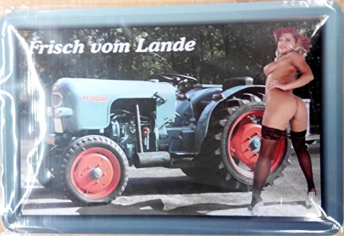 Traktor frisch vom Lande targa placca metallo curvo Nuovo 20x30cm VS3902-1