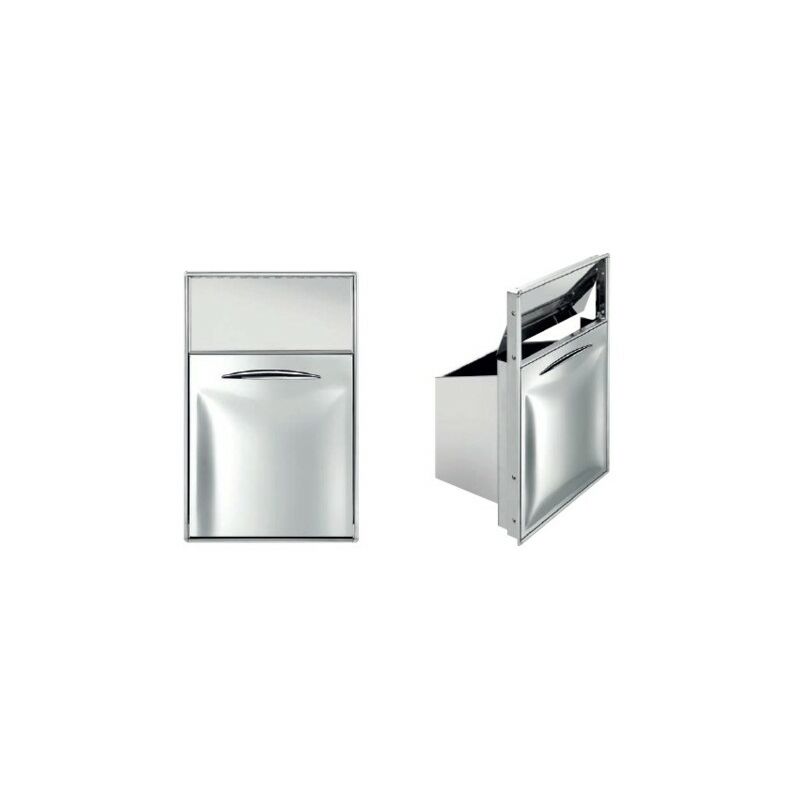 Codice RS9553 - Tramoggia rifiuti in acciaio inox con sportello basculante "via vai", modello MI-IC TRR 70 VV, dimensioni cm. 46.1x72.6 (AxB), foro banco cm. 44x70 (LxH), L1 cm. 43.9, L2 cm. 43.4, H1 cm. 70, P1 cm. 32.5, P2 cm. 32.1, E cm. 54.5. Prodotto dal design essenziale, la scelta dei materiali e la ricerca delle forme garantiscono una praticità d'uso e una funzionalità perfetta. Morbide linee essenziali esaltate dalla lavorazione delle superfici curve e da un particolare maniglia decorativa.