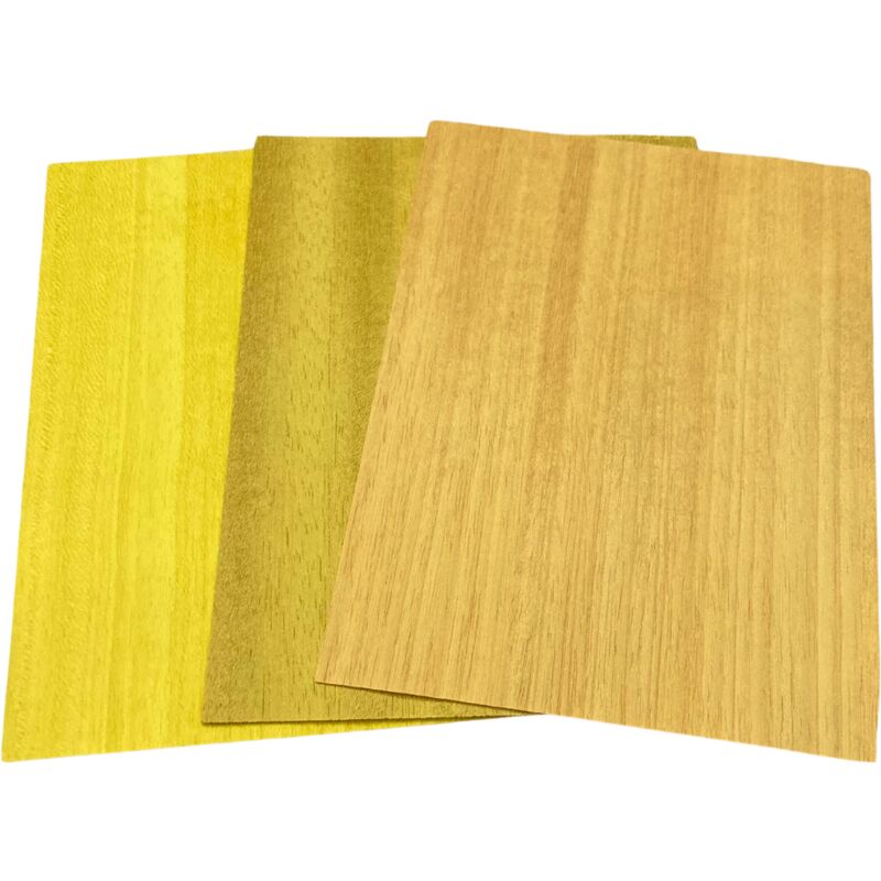 Tranciato / Impiallacciatura per intarsio - Yellow collection dimensione: circa 14 x 20 cm Giallo sole legno: Tay cod. KK.01.1004 pz.: 1 Giallo arancio legno: tay cod. KK.01.1005 pz.: 1 Giallo ocra legno: pama cod. KK.01.1006 pz.: 1