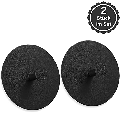 Trand Set di 2 ganci da parete autoadesivi per asciugamani, in design scandinavo, senza fori, colore nero