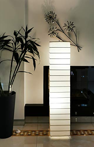 Trango 1214 - Lampada da terra in carta di riso, realizzata a mano, rettangolare, con aste decorative in bambù, altezza 125 cm, lampada decorativa, lampada da terra con paralume senza lampadina