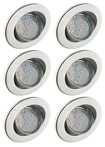 Trango Set di 6 faretti LED da incasso, con lampadine a LED, faretti da soffitto, faretti da incasso, plafoniere, faretti da soffitto, faretti, faretti, faretti, colore a scelta: alluminio cromato, effetto acciaio inox, bianco