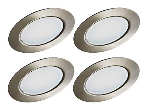 Trango Set di 4 Downlight da incasso a LED - apparecchio da incasso - lampada da soffitto per sostituire gli apparecchi alogeni G4 convenzionali - applicazione ideale: cappe da cucina - armadi per mobili - faretti a soffitto - plafoniera - illuminazione da incasso per mobili, vetrine, lampade per specchi, lampada da mensola, ecc. Colore Opzionale: nichel opaco (aspetto acciaio inossidabile) o cromato