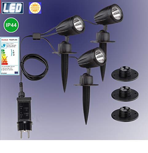 Trango TG3076-356 - Set da 3 lampade LED da giardino, riflettore giardino, riflettore strada, lampada da parete 3000K warm-weiß
