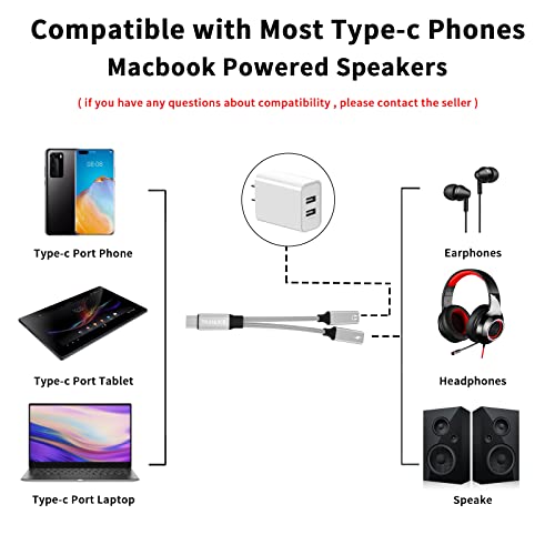 【Ascolto di musica e ricarica rapida PD 60 W】 L'adattatore per cuffie di tipo C 2 in 1 consente di caricare il dispositivo e riprodurre musica allo stesso tempo. Supporta la ricarica rapida PD3.0, il chip PD (Power Delivery Protocol) integrato fornisce una potenza di ricarica di 60 W. Non lasciare che la batteria scarica ti impedisca di goderti la tua musica preferita.