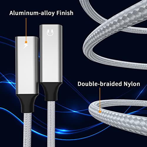 TRANLIKS Adattatore Cuffie USB C Jack, USB C Splitter 2 USB C, 2 in 1 Adattatore da USB C Splitter a USB C Adattatore per cuffie con cavo audio Aux PD 60W a ricarica rapida - Argento