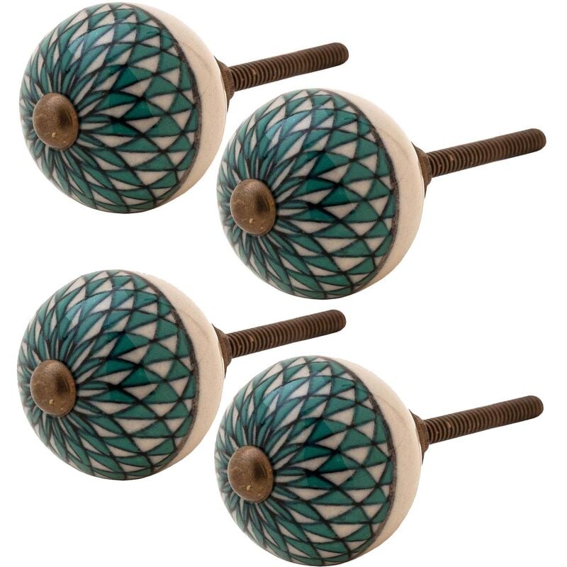 Aspetto Colore Verde Bianco Materiale principale Ceramica Materiali secondari Metallo Dimensioni Diametro (in cm) 3 Lunghezza del filo (in cm) 4 Altre caratteristiche Composizione Set di 4 pomelli identici per porte Informazioni aggiuntive Ceramica dipinta a mano Rosone in ceramica per pomello (set di 2)