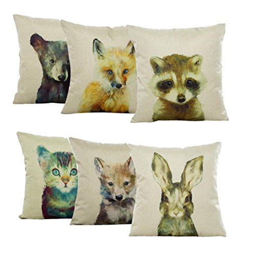 Transer, copricuscini con adorabile animale coniglio/cane/gatto/volpe/orso, federa guanciale per auto, divano, letto, regalo arredo casa, dimensione copricuscino 45 x 45 cm, Flax, C, 45cm*45cm/18''*18"