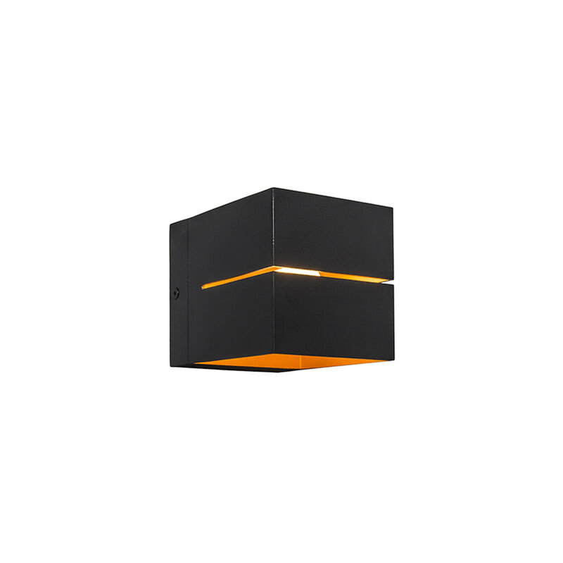 QAZQA Set di 2 lampade da parete moderne nere con interno oro 9,7 cm - Transfer Groove Lampada da parete dal design minimalista in alluminio, nei colori nero e oro. Grazie alle aperture su entrambi i lati, sulle pareti viene proiettata un'attraente luce radente. La lampada è perfetta in sala da pranzo, in ufficio, in camera da letto o in soggiorno. È dimmerabile (dimmer non incluso), quindi puoi creare tu stesso l'atmosfera perfetta. La lampada ha una profondità di 12,3 cm, un'altezza di 9,7 cm e una lunghezza di 9,7 cm. La piastra di montaggio ha una lunghezza di 9,7 cm e una larghezza di 9,7 cm. Questo apparecchio è adatto a sorgenti luminose di classe energetica da A++ a E. Puoi completare completamente questa lampada da parete ordinando una sorgente luminosa che si adatti a un attacco G9 (max. 40 Watt). Con Transfer Groove porti nella tua casa un bellissimo pezzo di illuminazione moderna dall'aspetto lussuoso. Ora ancora più economico come set da 2! Funzioni extra: Regolabile