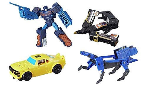 Set 4 personaggi trasformabili composto da bumblebee e 3 personaggi cassetta trasformabili in veicoli e robot.