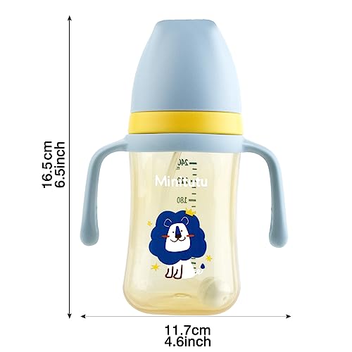 3 in 1 Transition Cup Bicchiere Antigoccia Bambini Tazza 240ml, con Cannuccia con Beccuccio Morbido Senza BPA, Tazza di Apprendimento a prova di Perdite con Manici (Blu)