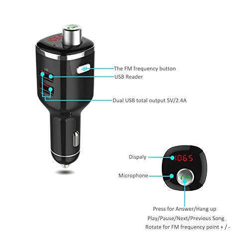 FM Transmitter, Webat Wireless Bluetooth Multifunctional Car Kit Phone Mount Holder Handsfree Car Charger for iPhone Samsung Smartphones Tablets iPad