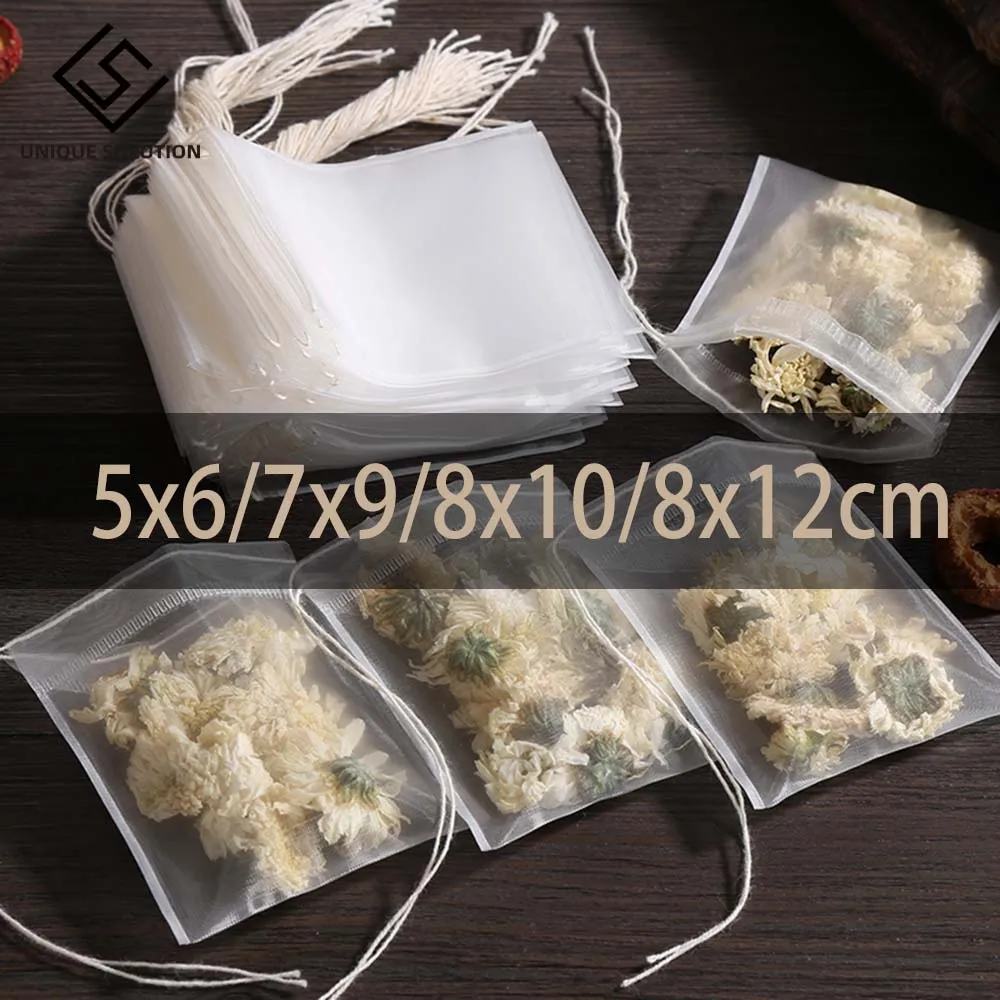 Transparent Teabags Empty Tea Bags Nylon Tea Filter Bags for Spice Herb Loose Food Disposable Tea bags with String Heal Seal