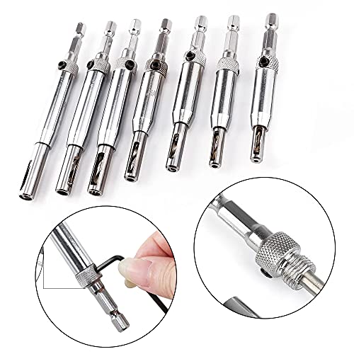 Set Trapano Autocentrante, 7 Pezzi Cerniera Autocentrante Trapano, Set di Punte Centrali da Trapano, Trapano Centro Set Trapano Legno, per Falegnameria di Porte e Finestre e Produttori di Mobili