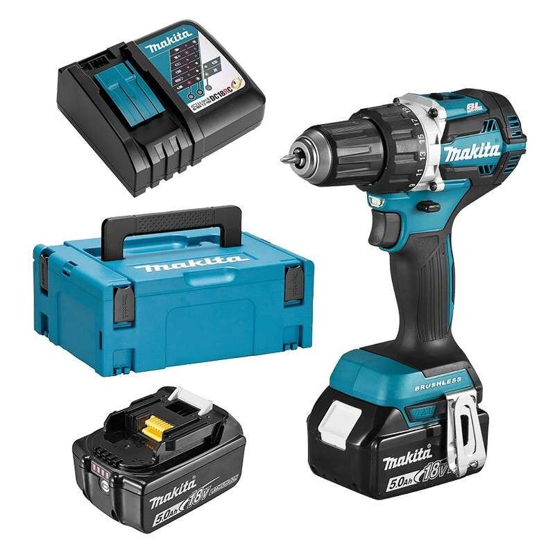 Makita - Trapano avvitatore a batteria 18 V Li-Ion 5 Ah Ø 13 mm - DDF484RTJ Potente motore brushless e alloggiamento in alluminio, ideale per l'uso pesante in loco. I vantaggi di questo trapano avvitatore a batteria Makita DDF484RTJ sono: - Trapano avvitatore con motore brushless, veloce (2000 rpm) e compatto (182 mm) per lavori pesanti. - Motore BL: Potente, maggiore compattezza della macchina, maggiore efficienza e manutenzione ridotta rispetto ai motori tradizionali. - Robusto grazie al suo cambio in alluminio e alla trasmissione interamente in metallo. - La tecnologia XPT limita l'infiltrazione di acqua e polvere - Doppie luci a LED integrate per facilitare il lavoro nelle aree scure - Gancio per cintura regolabile per l'uso a destra e a sinistra - Impugnatura Soft Grip per il comfort Specifiche tecniche del trapano avvitatore Makita DDF484RTJ: Tensione: 18 V Chimica della batteria: Li-Ion Capacità della batteria: 5 Ah Tempo medio di ricarica: 45 min Numero di velocità: 2 Velocità
