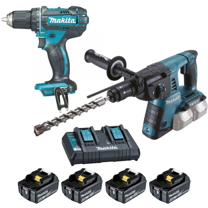 Dettagli: Trapano avvitatore Avvitatore veloce e compatto per l'uso quotidiano La tecnologia XPT limita l'ingresso di acqua e polvere Protezione della batteria contro sovraccarico/scarico profondo/ surriscaldamento Scatola ingranaggi interamente in metallo Doppia illuminazione a LED integrata per facilitare il lavoro in aree buie Velocità variabile del grilletto per un controllo perfetto della macchina in base al lavoro da svolgere Selettore a 2 velocità con 21 posizioni di coppia + posizione di foratura Invertitore del senso di rotazione Gancio per cintura posizionabile a destra e a sinistra Impugnatura morbida per un maggiore comfort Trapano a scalpello Il trapano a scalpello a batteria Makita DHR 264 è alimentato da 2 batterie da 18 v, per una potenza totale di 36 v. La macchina è dotata di tecnologia XPT per limitare l'ingresso di acqua e polvere. Il trapano a scalpello Makita DHR 264 è dotato di un mandrino intercambiabile a serraggio rapido (SDS-Plus autoserrante) e di un