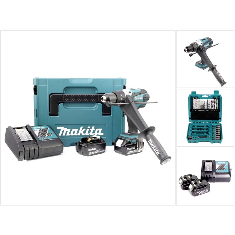 Dotazione: - 1x Makita DHP 458 18 V Trapano avvitatore ad impulsi a batteria - 1x Impugnatura laterale e arresto di profondità - 2x Batterie Makita BL 1840 4,0 Ah - 1x Caricatore DC 18 RC - 1x Valigetta Makita Makpac 2 - 1x Kit di 60 Bit e punte Makita ( P-90358 ) - 1x Inserto in schiuma espansa Descrizione prodotto: Il trapano avvitatore ad impulsi a batteria Makita DHP 458 18V è caratterizzato da un ingranaggio epicicloidale a 2 velocità e da un corpo compatto. Il motore brushless consente meno attriti interni, permettendo al prodotto di erogare più potenza e di avere maggiore durabilità. La coppia della macchina è regolabile in 21 posizioni e l'impugnatura ergonomica con rivestimento Soft Grip offre un comfort maggiore durante l'uso. Il trapano ha inoltre la possibilità di rotazione sia verso sinistra che verso destra. La luce LED integrata assicura una maggiore visibilità e dunque un lavoro più preciso. Dati tecnici: Velocità di rotazione (L): 0 - 400 min-1 Velocità di rotazione